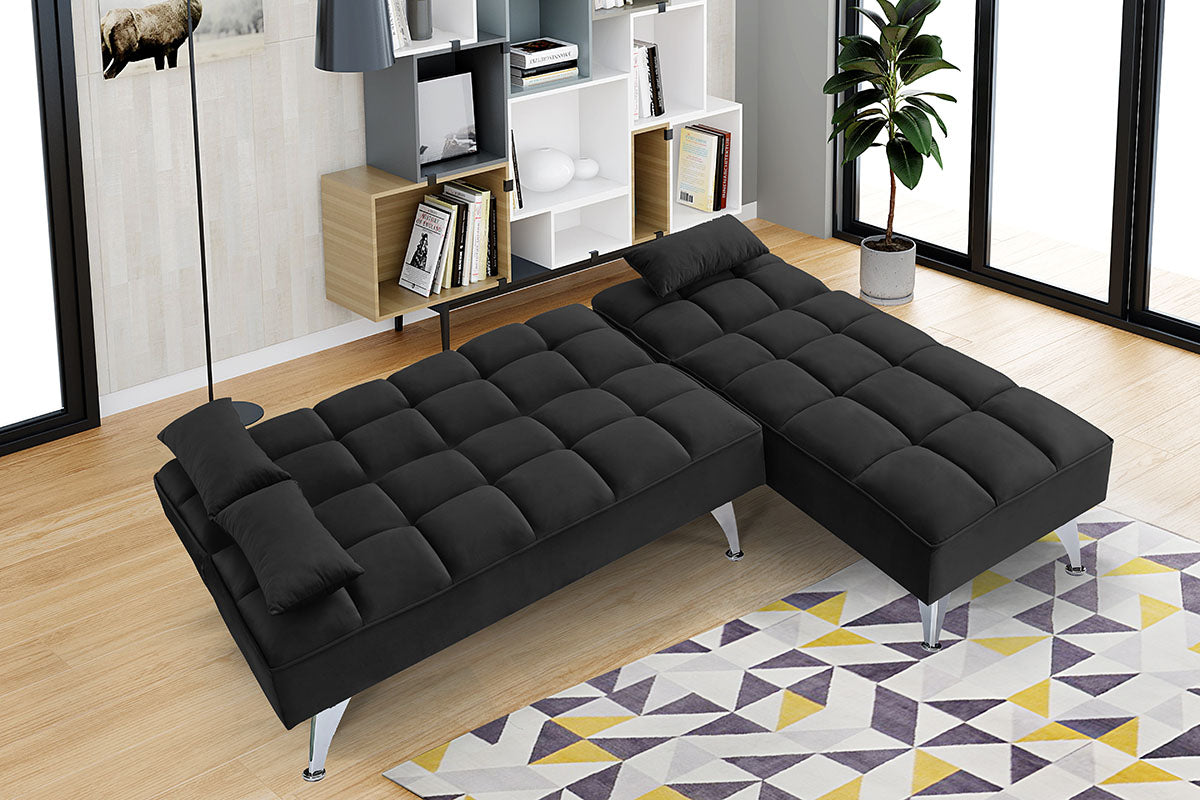 Les brinda la libertad de configurarlo segun sus necesidades y preferencias, ademas de brindarles un espacio comodo para descansar o recibir visitas. Fabricado con armazon de madera, el Sofa Cama Chaise Longue Keren es de 3 plazas, tiene acolchado de espuma, patas metalicas y muelles zig-zag. Incluye 2 cojines. Facil de montar.