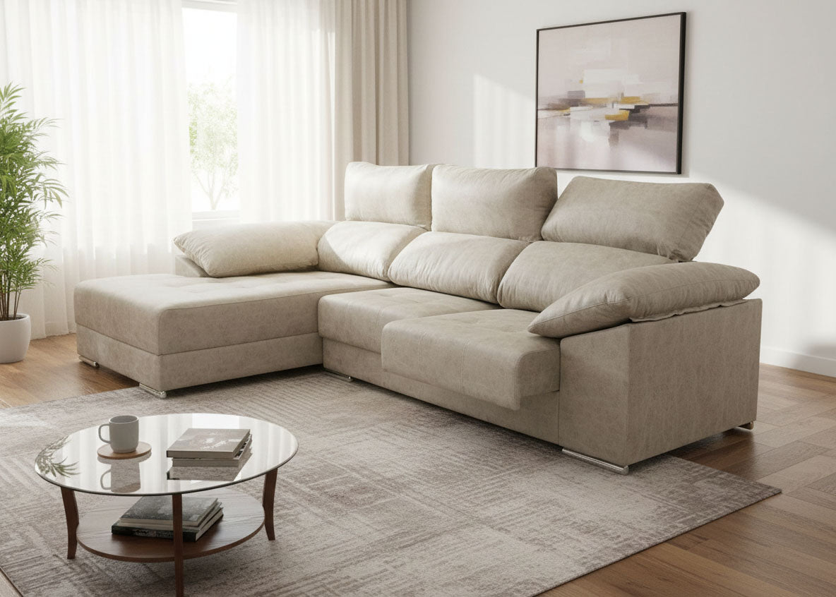 Le Mega Sofa Chaise Longue Santorini est fabriqué avec des matériaux de haute qualité, dont une structure résistante et un revêtement durable, en microfibre Camellia. Facile à nettoyer et à entretenir, ce qui en fait une option pratique et fonctionnelle pour n'importe quelle maison. N'hésitez pas à vous procurer le vôtre dès aujourd'hui !