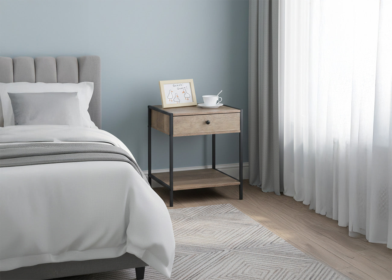 Mesita de Noche Nancy en Madera y Metal, Estilo Industrial