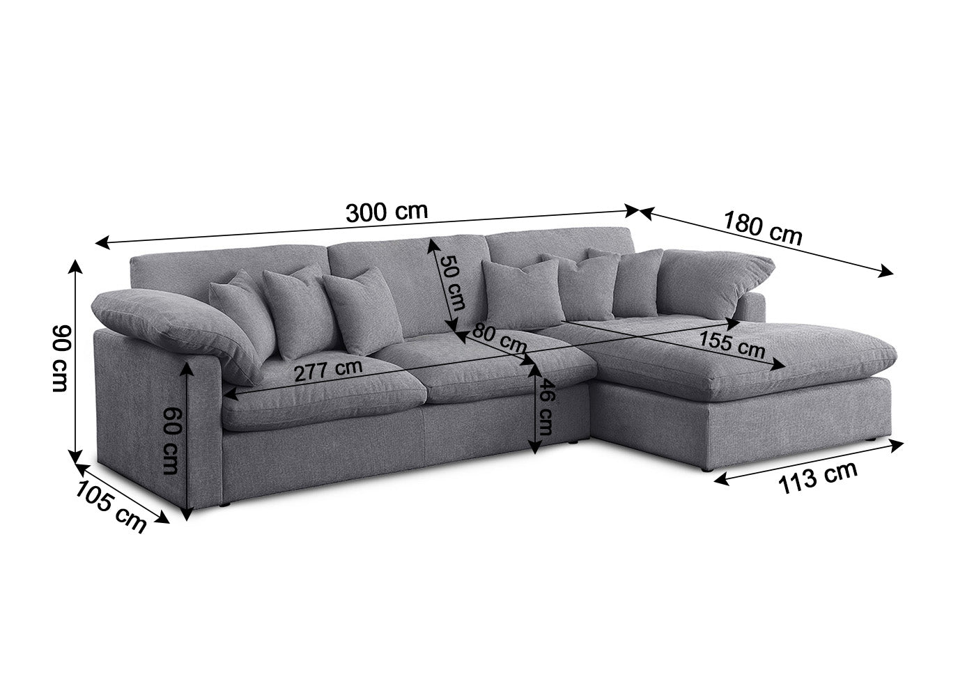 Sofa Chaise Longue Abbi Gris 300cm