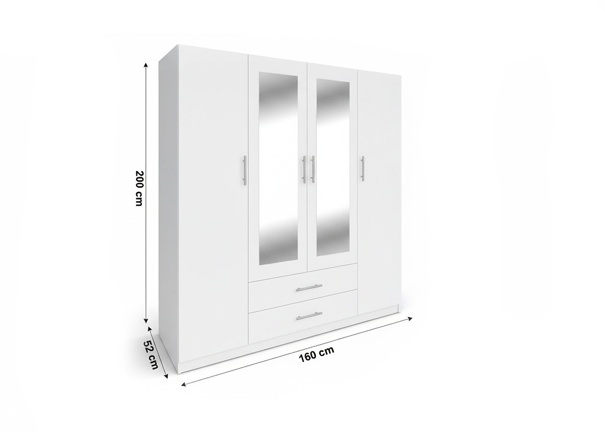 Armario de Dormitorio 4 Puertas W, con Espejo