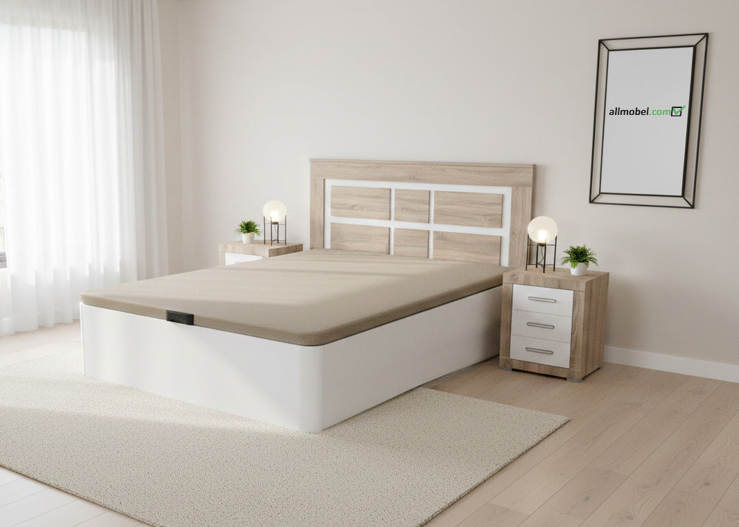 Crea el dormitorio que siempre deseaste con este pack completo diseñado para quienes exigen lo mejor. La cama canape integra almacenamiento inteligente que libera espacio, mientras que el cabecero moderno y las dos mesitas coordinadas crean una composición armoniosa y sofisticada. Cada pieza ha sido cuidadosamente seleccionada para ofrecerte durabilidad excepcional y máximo confort. Disfruta de un descanso profundo en un ambiente que refleja tu personalidad, donde la funcionalidad y el diseño contemporáneo se fusionan para transformar tu espacio en un refugio de bienestar y elegancia.