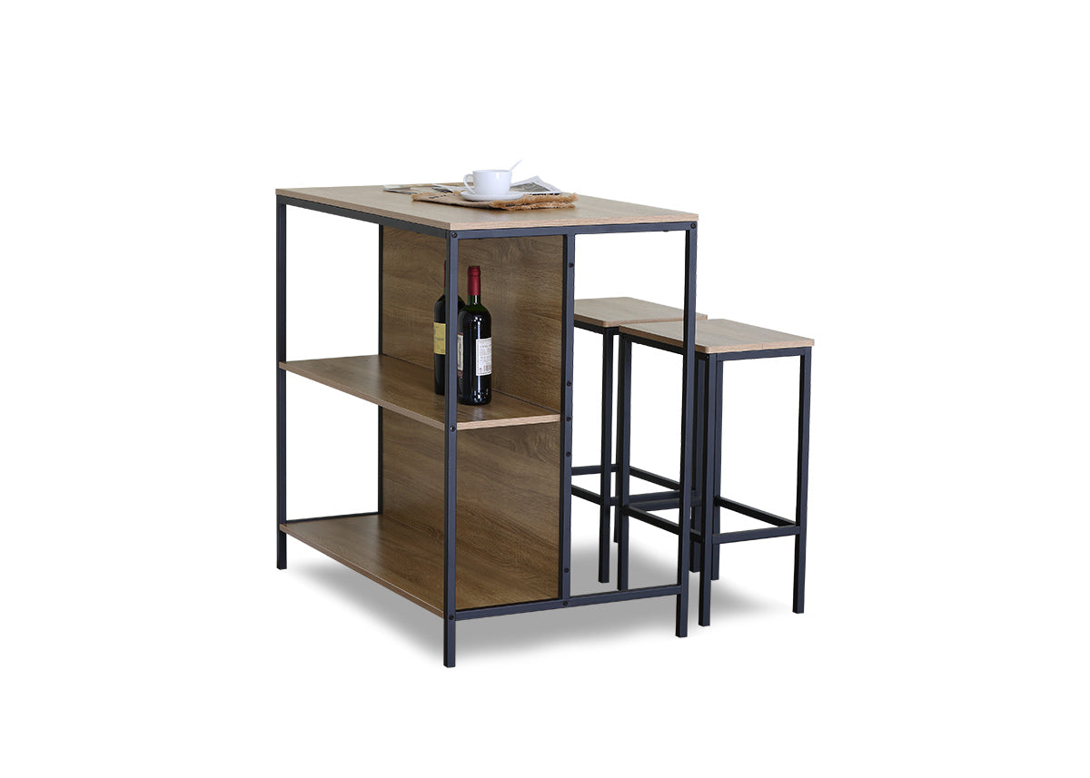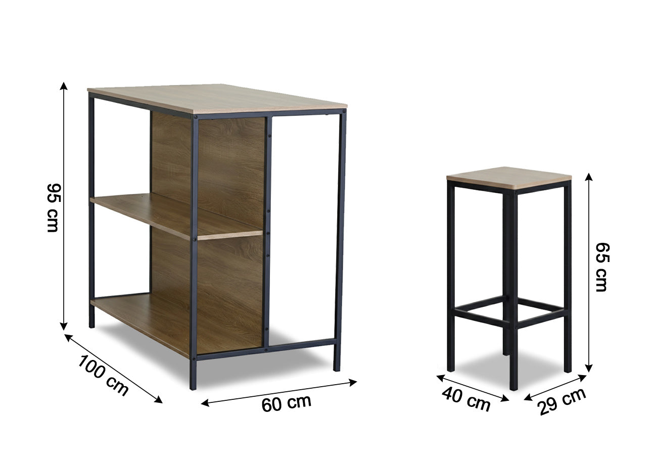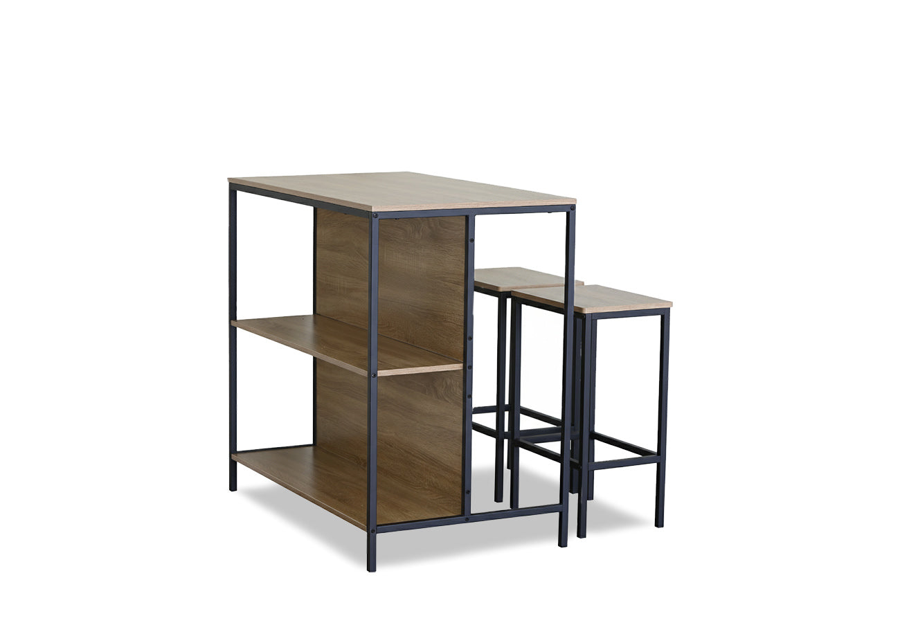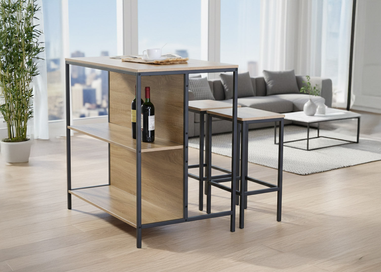 Mesa de Bar en Madera y Metal + 2 Taburetes Nancy. Diseño Industrial