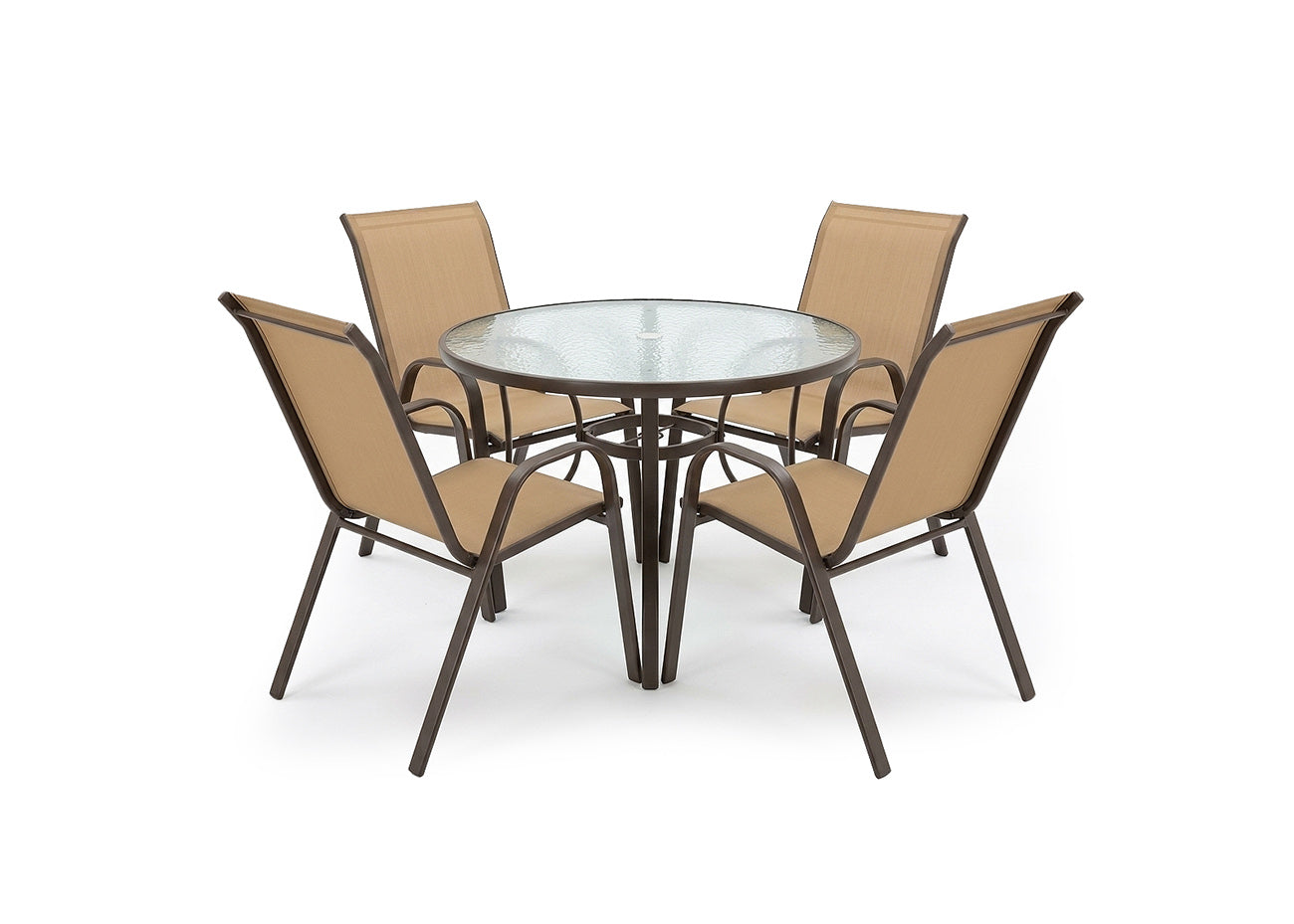 Mesa Redonda de Cristal Templado + 4 Sillas. Muebles de Jardin y Terraza