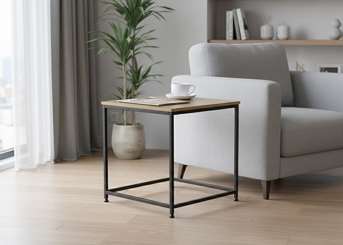 Mesita Auxiliar en Madera y Metal Nancy, Estilo Industrial