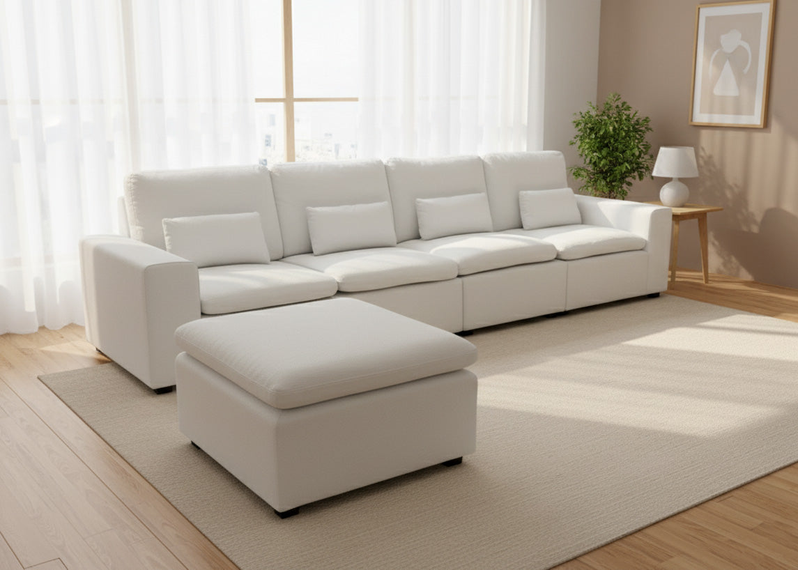 Descubre el Sofá Chaise Longue Candy, la perfecta unión entre confort, estilo y funcionalidad. Su diseño contemporáneo y sus líneas equilibradas aportan un aire moderno y elegante a cualquier salón. Incluye un puff independiente que amplía las posibilidades de uso: colócalo como extensión para crear una cómoda chaise longue o utilízalo como asiento auxiliar o reposapiés. Su estructura resistente y el tapizado de alta calidad aseguran una larga durabilidad, mientras los asientos amplios y respaldos ergonómicos ofrecen un descanso excepcional. El sofá Candy es ideal para quienes buscan versatilidad y diseño en una sola pieza, convirtiendo cada rincón del hogar en un espacio de bienestar y estilo.
